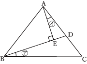 下の図の三角形ABCは辺ABと辺ACの長さが等しい二等辺三角形です。辺ACを2:1に分ける点Dを辺AC上にとります。また,頂点AからBDに垂直な線を引き交点をEとします。角㋐の大きさと角㋑の大きさは等しくなりました。このとき,角BACの大きさは角㋐の大きさの( ① )倍です。BEの長さはEDの長さの( ② )倍です。