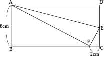 AB=8cmの長方形ABCDを図のようにAEを折り目として折り曲げたとき,頂点Dが辺BC上のところに来て,CF=2cmとなりました。このとき,辺BCの長さは( )cmです。